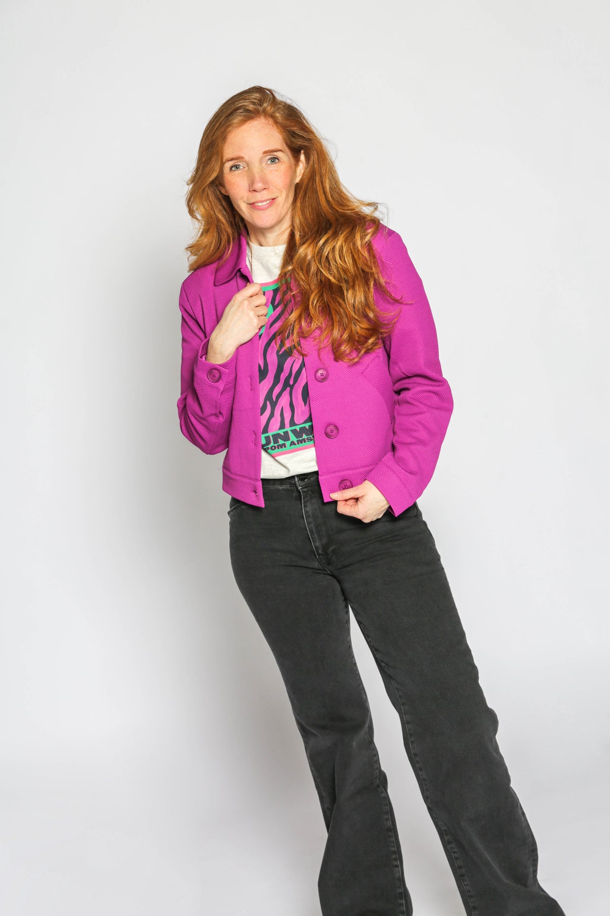 Het voorjaar vraagt om kleur! De items van POM Amsterdam zullen jou laten stralen. Een speels jasje zul je ieder seizoen plezier van hebben en laagjes zijn een echte must voor de frisse voorjaarsdagen. Combineer het speelse jasje zoals in deze look met een mooi t-shirt en jeans en maak de look compleet met een stoere sneaker.